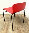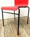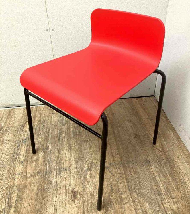 空間にアクセントを加える鮮やかな赤色の座面と、スマートなスチールのブラック脚がマッチしたスタッキングチェアです。 樹脂製ですので、お手入れがラクラク! 休憩室や飲食スペースにオススメです!