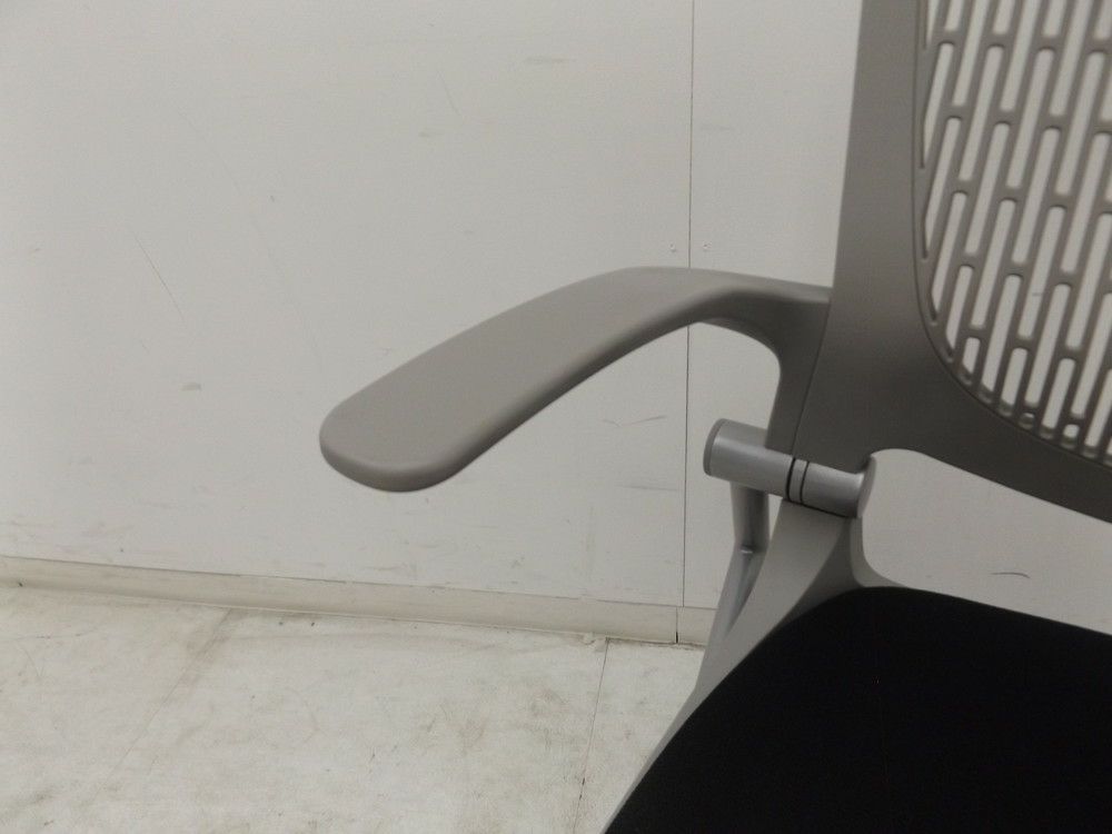 座面を跳ね上げることで、チェア同士を前後平行に重ねて収納できるキャスター付きチェアです。