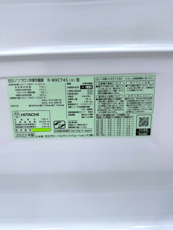 他の画像を見る 【30000円OFF】★2022年製★大容量735Lのラグジュアリーモデル! 日立 6ドア冷蔵庫 東京町田店 中古品 送料別途見積品 セール品 販売価格 ¥ 231,000 のところ 30000円OFF ¥ 198,000 税込 在庫数:1 | A ランク W880xD738xH1833mm カートに入れる お気に入りに登録する