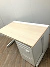 【デスク】木目天板/配線2ヶ所/天板下引出無 【ワゴン】3段式/ペントレー/仕切り板2枚/ダイヤル式錠