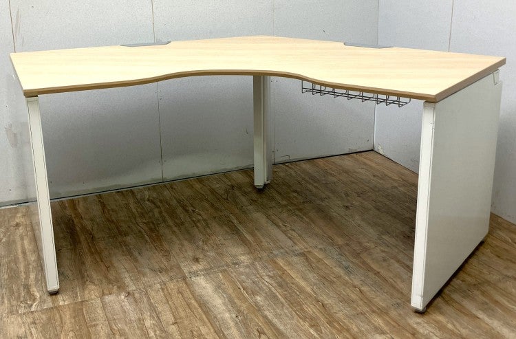 《仕様》 天板形状:ブーメランデスク 天板色:木目天板 配線:配線2ヶ所 天板下引出:無