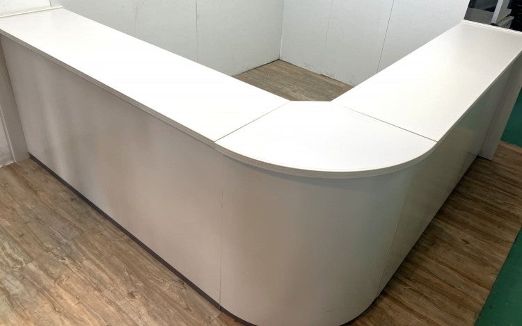 1800ハイカウンターx2/コーナーカウンターx1の3点セットです。 1800ハイカウンターにはそれぞれ側板1枚が付属します。