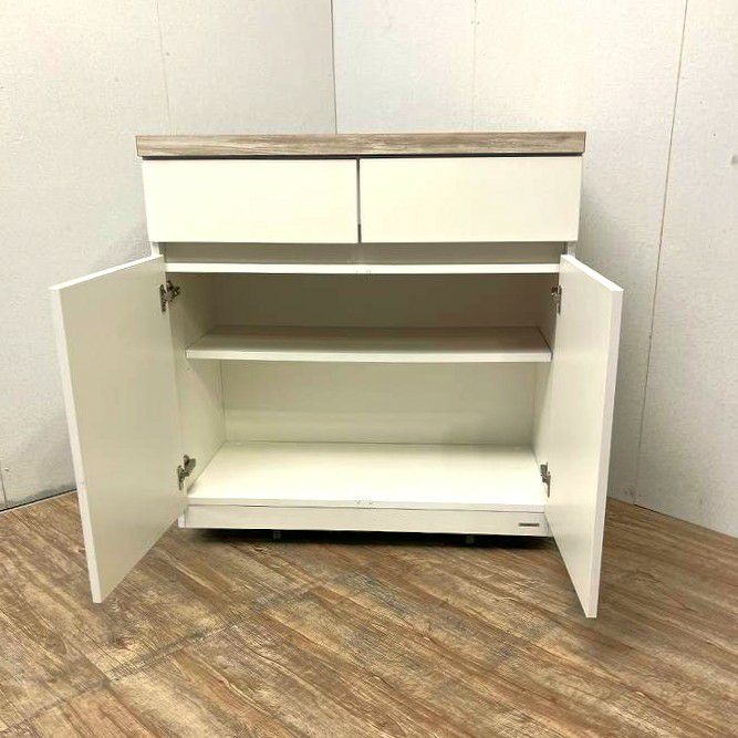 引き出し2ヶ所+両開き/コンセント2口 付属品: カギ無し仕様 天板:木目天板 棚板:1枚
