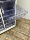 付属品: カギ2本 棚板:2枚 クリアケース:3列/浅型10段/深型6段 A4対応 梱包: 上段寸法:840x440x1090 下段寸法:840x440x1140 連結可否:可 /2022年製