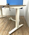 昇降スイッチはポジションメモリー付きで高さを4つまで記憶できます。配線カバーには大型のアクセスフラップアウトカットを採用。コンセントタップは3口コンセントタイプで、充電用のUSB-A端子も装備。 使い勝手に徹した一台です!