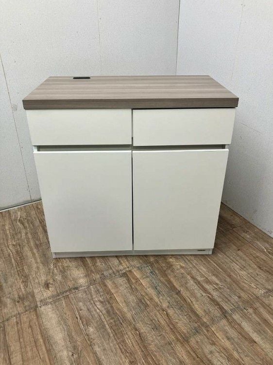 引き出し2ヶ所+両開き/コンセント2口 付属品: 天板:木目天板 棚板:1枚