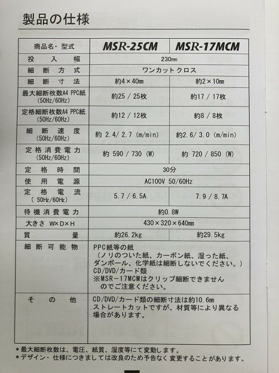 他の画像を見る コンパクト設計パワフル細断! 明光商会 シュレッダー 大阪店 中古品 定価 ¥ 127,600 のところ 販売価格 ¥ 26,400 税込 在庫数:1 | A ランク W430xD320xH640mm カートに入れる お気に入りに登録する