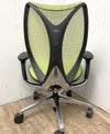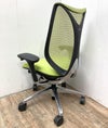 Sabrina(サブリナ)シリーズ 曲線美と機能美。流れるようなラインを描く優美なフォルムと、剛と柔を兼ね備えた新感覚の座り心地を実現した特徴的なリングフレームと透過性の高いメッシュ地が、背中を心地よく包み込む。
